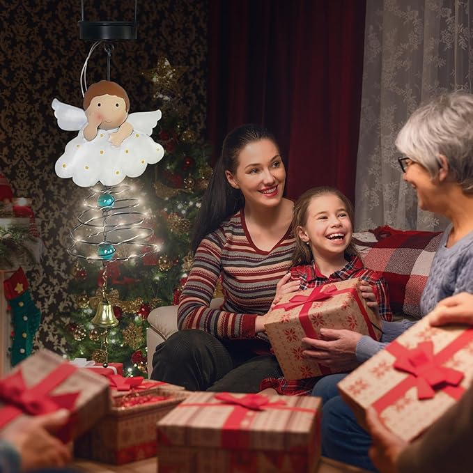 Solar Garden Decor for Outside, Solar Lanterns Outdoor Waterproof, Angel Lamp Hanging Light for Porch Decoration, Yard Art, Unique Wind Chimes Gift for Women Mom Grandma