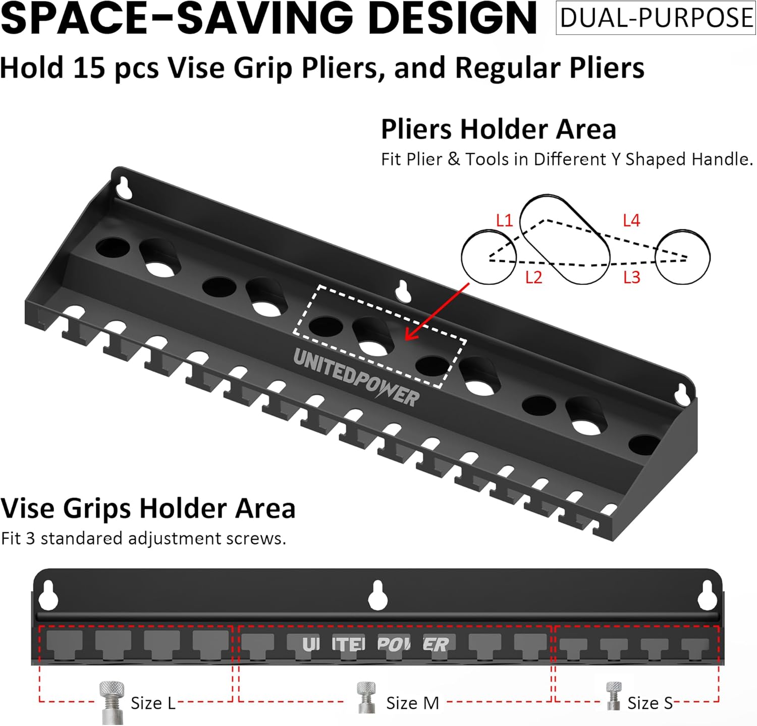 UNITEDPOWER Vise Grip Holder, Wall Mount Pliers Storage Rack Organizer for Workshop, Shed, Garage, Stores up to 15 Vises or 11 Pliers