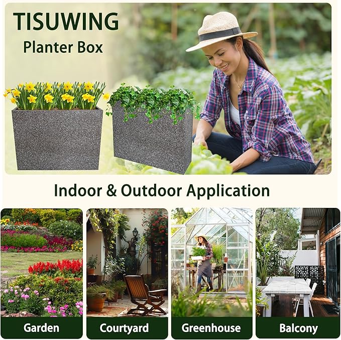 • [Wide range of uses]: The tall planter box is suitable for outdoor/indoor decoration with its modern style, adding a touch of beauty to garden, entrance, front porch, balcony, patio, deck or indoor hall.