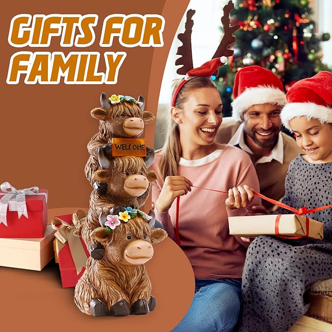 Garden Highland Cow Statue Solar Outdoor Decor with Flower Decoration Funny Triple Highland Cow Decor Birthday Gifts for Women Mom Highland Cows Figurine for Yard Garden Patio Lawn Ornaments