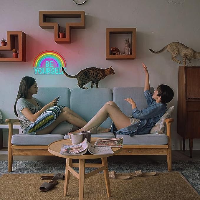 • High Quality Neon Sign: Be yourself neon light signs are made of silicone tube+led neon strips +acrylic back plate. Led neon signs is bright, noise free and energy-saving,5V low voltage, long life, no risk of too hot or glass damage.