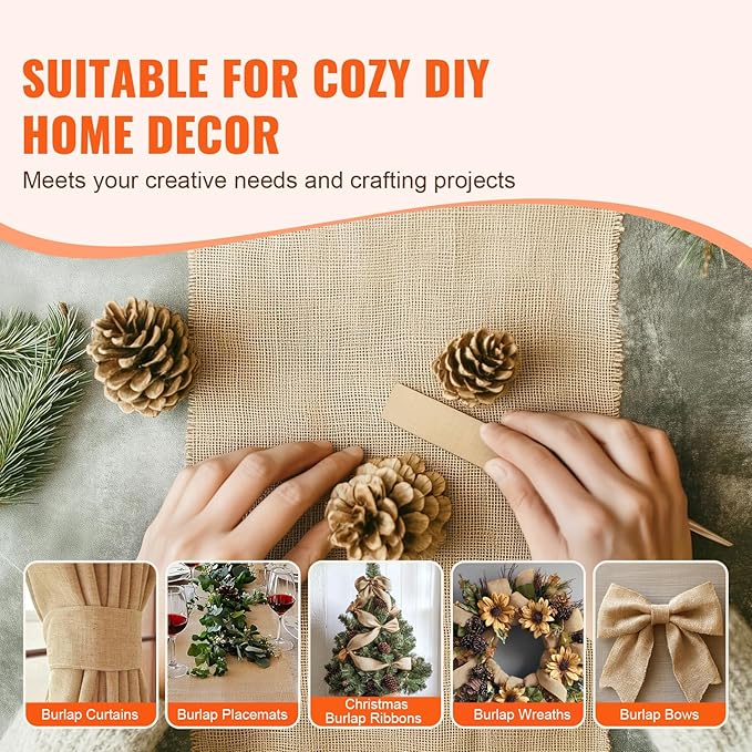 • Home Decoration: Unleash your creativity with this roll of burlap! It's not just a roll, it's a canvas for your imagination. From crafting placemats, bows, wreaths, Christmas ribbons, to making gift bags, it's the ideal material to add a charming touch to your kitchen and home. Burlap material's natural texture brings a cozy, country vibe to any event or home space. It adds a warm, vintage feel that will impress your guests.