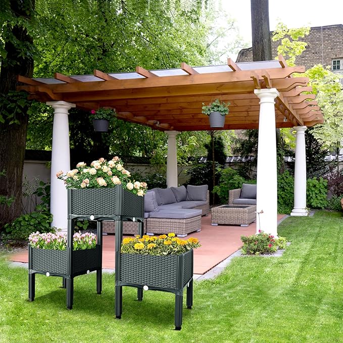 • ✔PREMIUM QUALITY: Made of reinforced PP material, the elevated planters are anti-rust, sturdy& durable, safe for growing fresh organic food. A handy tool kit is included for easy gardening.