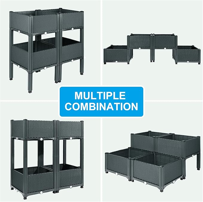 MAYOLIAH Raised Garden Bed with Legs 16.5" H Elevated Planter Box, Plastic Raised Beds for Gardening Vegetables Herb Flowers, Perfect for Indoor Outdoor Planting, 4 Boxes