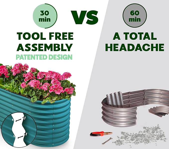 • EFFORTLESS ASSEMBLY, LIKE NO OTHER! Begin your planting journey by choosing our innovative patented design, featuring the perfect combination of easy assembly and durability. Thanks to our unique tool-free design, assembly is a breeze and can be completed in just 30 minutes! Get started on your garden right away and enjoy fresh, healthy produce in no time.