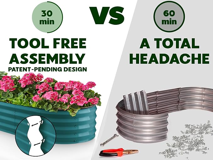 • EFFORTLESS ASSEMBLY, LIKE NO OTHER! Begin your planting journey by choosing our innovative patented design, featuring the perfect combination of easy assembly and durability. Thanks to our unique tool-free design, assembly is a breeze and can be completed in just 30 minutes! Get started on your garden right away and enjoy fresh, healthy produce in no time.