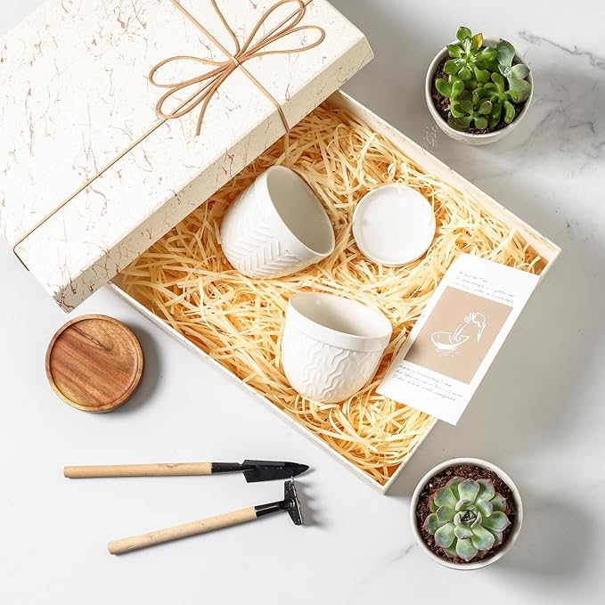 • Excellent Craftsmanship: These indoor plant pots are made of high quality material and fired at high temperatures that make it thick and sturdy, providing longer service life and resistance to cracking. Each succulent pots with saucers are wrapped with thick foam to avoid damage to the flowerpot during transportation