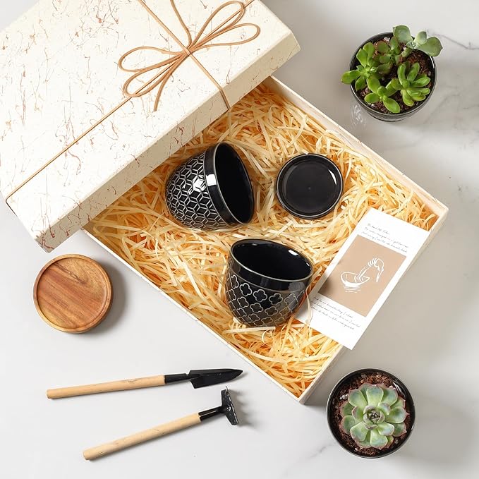 • Excellent Craftsmanship: These indoor plant pots are made of high quality material and fired at high temperatures that make it thick and sturdy, providing longer service life and resistance to cracking. Each succulent pots with saucers are wrapped with thick foam to avoid damage to the flowerpot during transportation