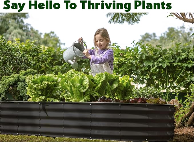 • BUILT TO LAST- The Plant & Plot garden bed is treated to withstand everyday wear and tear due to its 0.6mm thick, galvanized metal sheets and a highly durable zinc coating. Our prime materials ensure the garden bed is sturdy and maintains its shape over time. From heavy rain to extreme heat, we made sure to protect your garden bed from rust and corrosion, so it's the perfect choice if you're looking for a long-lasting solution.
