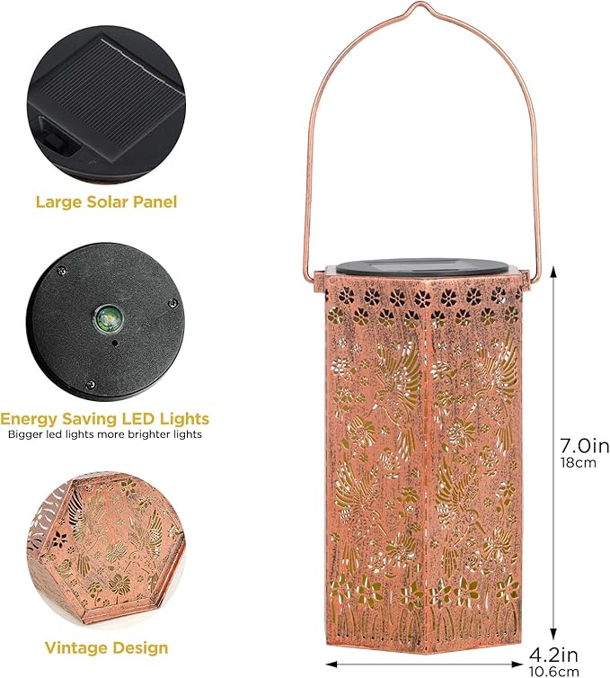 • 【PERFECT GARDEN DECORATIVE LIGHTS】 - Hummingbird solar lights can cast a unique and beautiful pattern in a dim environment, create a gorgeous and warm atmosphere for your garden, bring vitality and fun to your life. The unique design and beautiful bronzer give it an artistic feel, perfect for decorating gardens, backyards, front doors, outdoors, sidewalks and many other scenes.