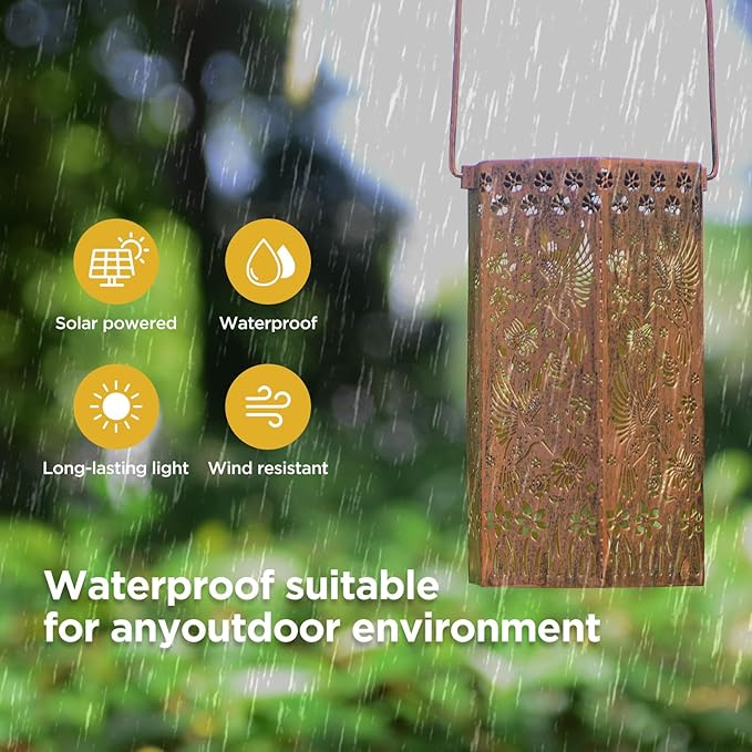 Outdoor Lanterns Hummingbird Gift for Women/Mom/Grandma/Sister, Solar Lanterns Outdoor Waterproof Butterfly, Garden Decor,Christmas, Mother's Day, Thanksgiving Gifts, Solar Decoration for Yard, Patio