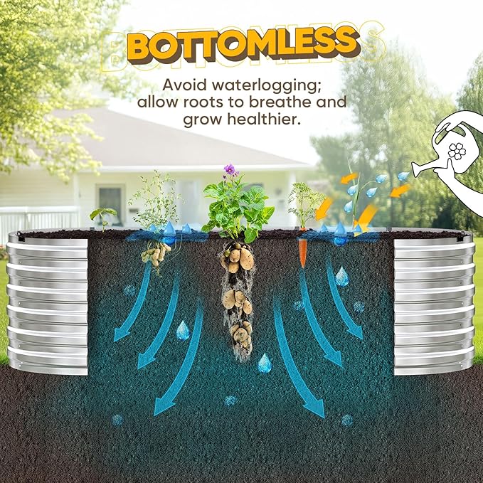 • 【Avoid bending over and squatting】Tailored for wheelchair users, seniors, and those with back discomfort, our metal raised garden bed eliminates the strain of bending. Stand-up planting, pruning, and harvesting for a joyful, back-friendly gardening experience