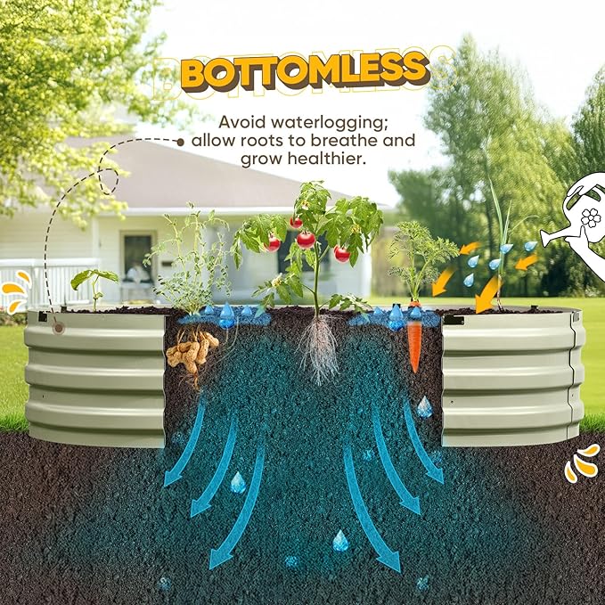 • 【Safe Rolled Edges】The edges of the metal raised garden beds are meticulously crafted with a rolled edge process, eliminating sharp edges to ensure your hands stay safe from cuts during assembly and planting, letting you safely enjoy the pleasure of gardening.