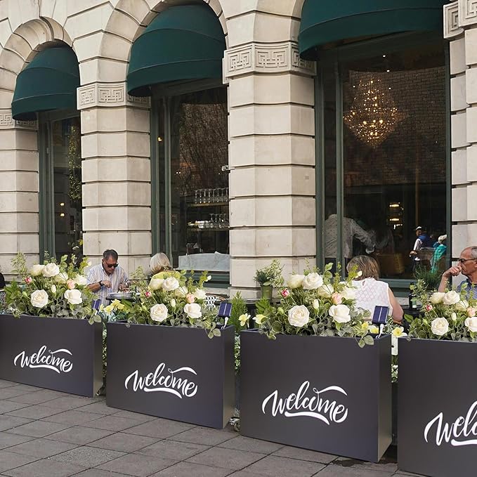 Metal LED Planter Box Rectangular Block - Galvanized Steel Long Planters Box with Solar Light Outdoor All-Weather Use with Drainage Holes for Cafe Bar Mall Store Patio/Porch/Entrance, 35.5×24×12IN