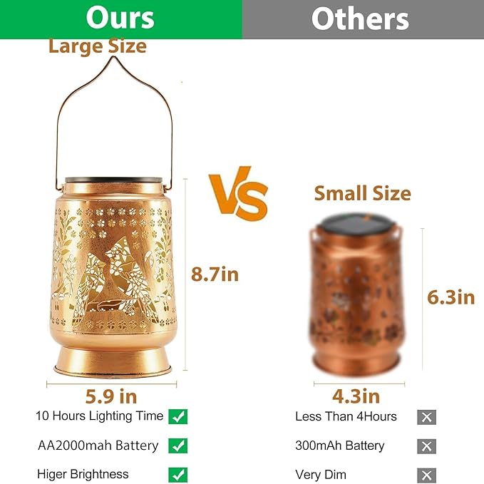 • [Exquisite Decorative Design]: The solar lanterns outdoor hanging with its elegant appearance and exquisite hollow-out design, adds a unique decorative charm to outdoor spaces. Whether placed on tables or the ground, it perfectly complements Yard, Patio, garden