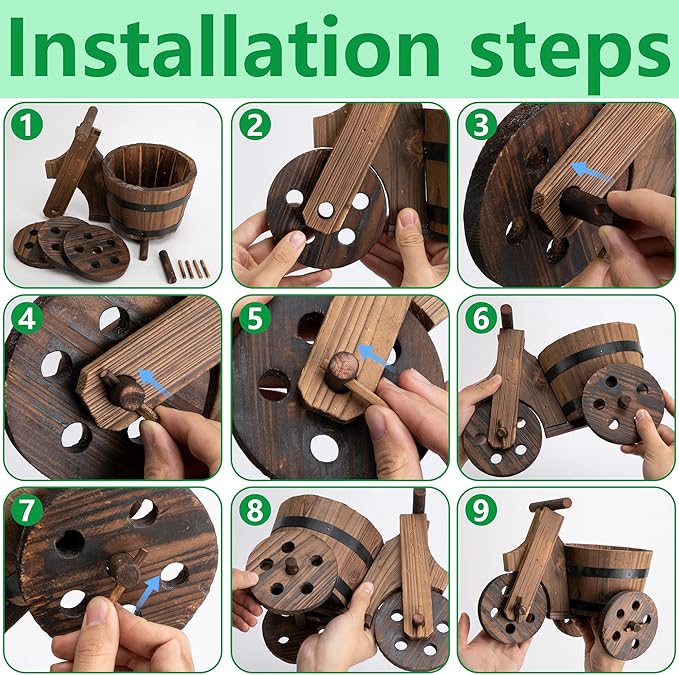• Prefect size:Each wooden raised tricycle planter is 9.5 inches high, 11.5 inches long and 8 inches wide, lovely size for indoor and outdoor decoration; the bucket is 6.5 inches in diameter and 4.5 inches deep for you to grow your favorite plants.