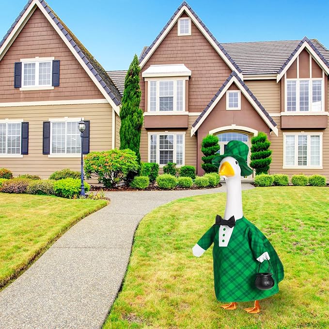 • Vibrant St Patrick's Day Design: the green plaid lawn goose suit uses classic green plaid, atmosphere fitting for any St Patrick's Day celebration; Its aesthetic appeal makes it ideal not just as a St Patrick's Day goose outfit but for many festive occasions