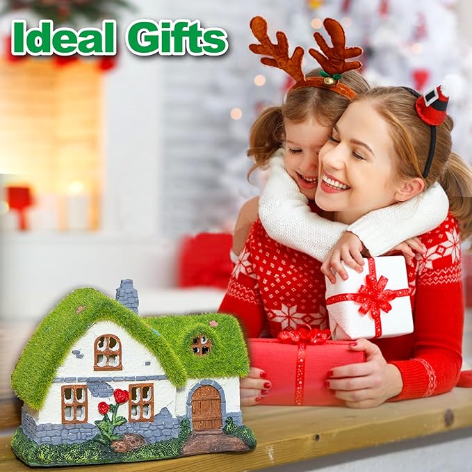 • Charming Design: Our solar-powered fairy-tale house statue features a delightful design, complete with a charming front door and five windows (four in front and one in the back). Measuring 7.3 x 3.6 x 5.2 inches, this decorative piece adds a whimsical touch to any garden, patio, or indoor space, creating an inviting atmosphere