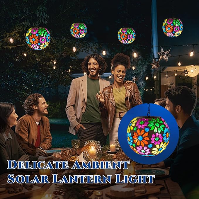 • 【Perfect Gift】A perfect gift for garden lovers, these colorful mosaic gazing ball hanging lanterns elevate weddings, holidays, or backyard parties. Mosaic artistry and practical functionality make these mosaic solar hanging lanterns cherished for birthdays, housewarmings, or as festive outdoor decor that sparks joy in every season.