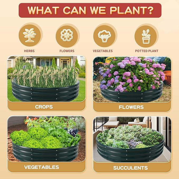 • 【MULTI-PURPOSE】: ZBZBML circle raised garden beds outdoor keep your plants organized and easily accessible with our raised beds. It is perfect for both small spaces and large gardens,the raised design eliminates the need for bending or kneeling, making gardening more comfortable and accessible for everyone.Also it is ideal as a fire ring or used for wood storing when camping outdoor.