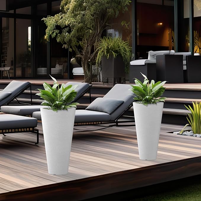 • Premium Tall Planters - Meticulously crafted with durable construction and superior workmanship, our planters are made from high-quality plastic, ensuring longevity, weather-resistance, and color retention. Whether utilized indoors or outdoors, these tall round planters are suitable for all seasons.