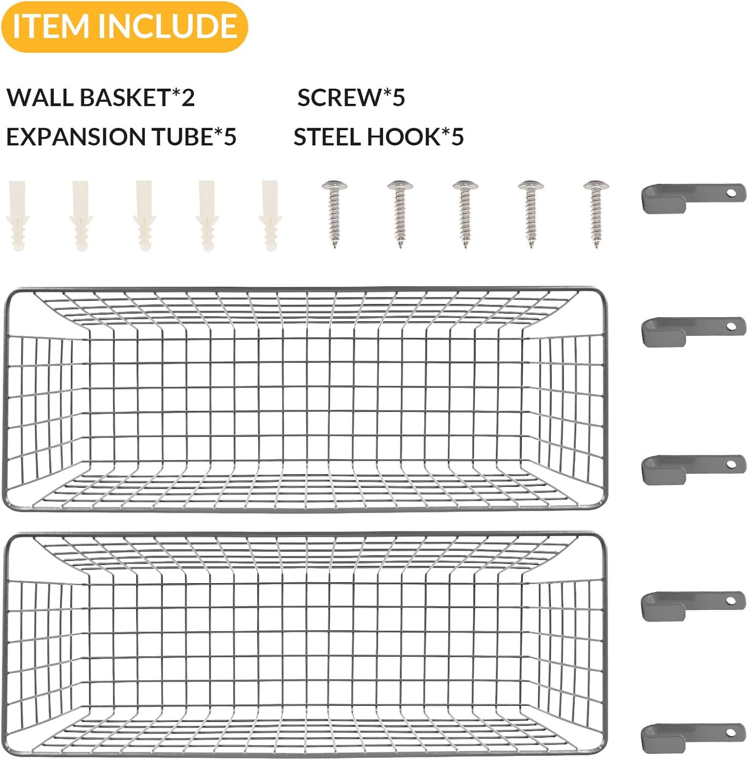 • Easy Installation: Includes 2 hanging baskets, complete with mounting hardware set (5 steel hooks + 5 expansion tubes + 5 screws). Simply mount the hooks to the wall using the included expansion tubes and screws, then hang the basket - you're ready to go! If you prefer not to hang it on the wall, you can also place it wherever you want. It's a versatile and convenient choice.