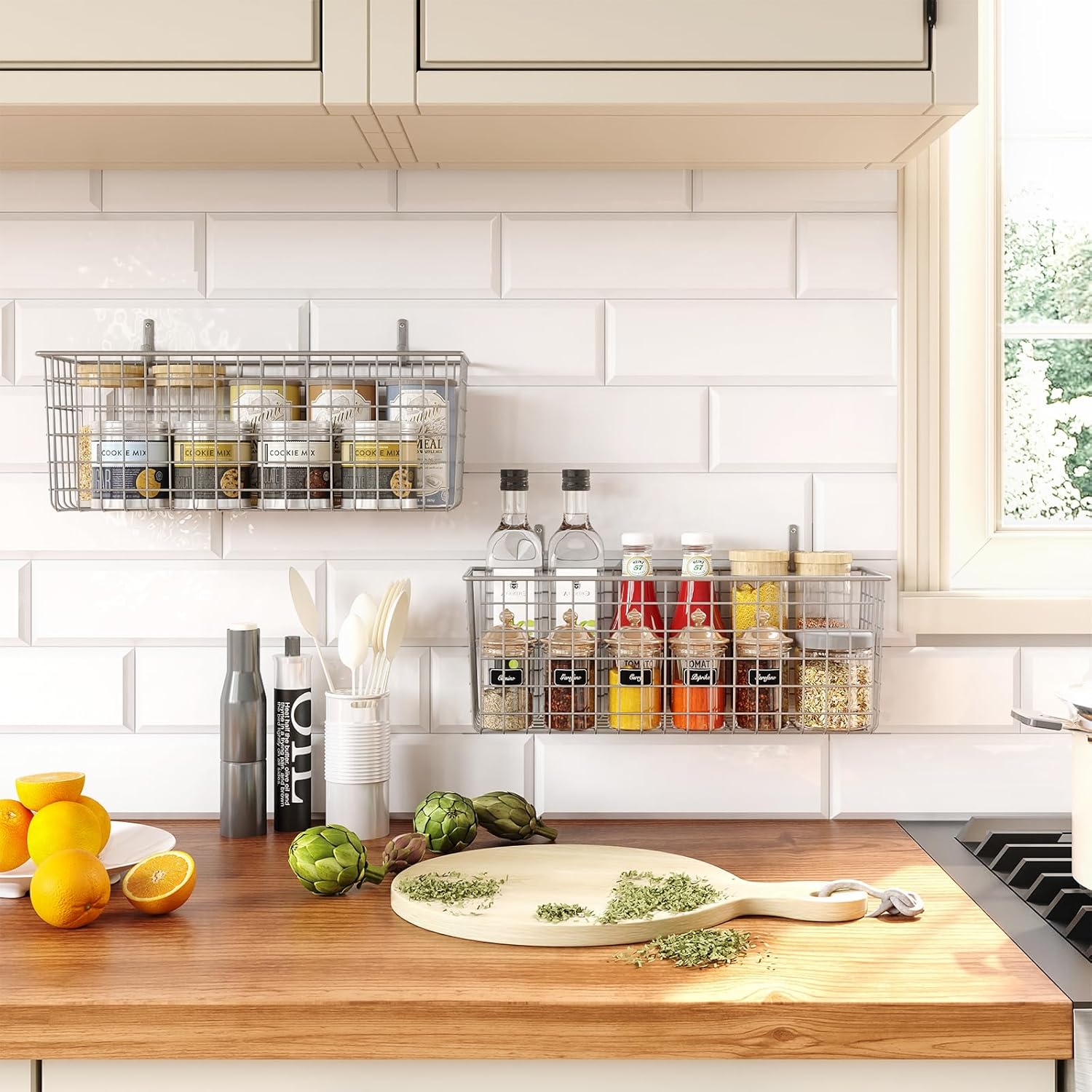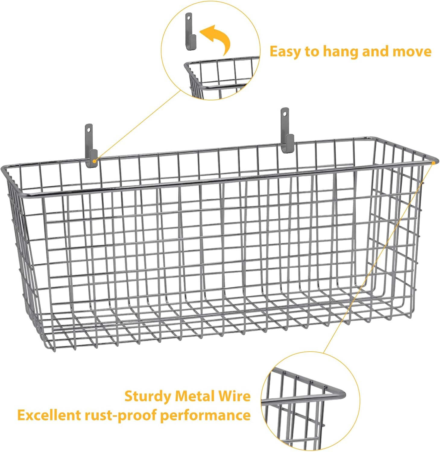 • Sturdy Metal Wire Baskets: These metal wall baskets are made of solid metal wire with anti-rust coating, sturdy and durable for long lasting. The wire baskets for organizing open design allows you to see the items inside the basket, which makes it easy to find the item you need. And easy to clean, just wipe clean with a soft damp cloth and dry towel.