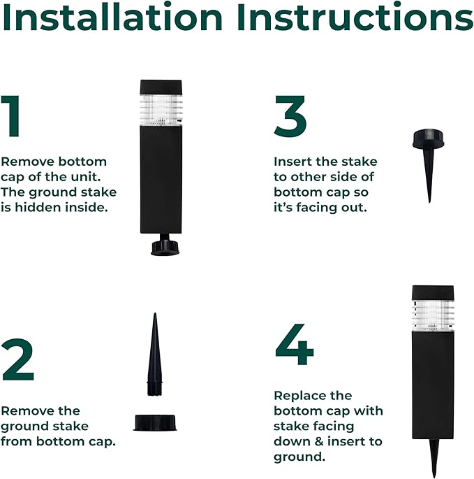 • Complete Pathway Illumination: The 4-pack ensures thorough coverage, lighting up multiple areas to enhance both safety and aesthetics.