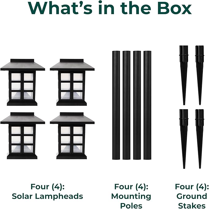 • Easy Installation: Includes ground stakes for simple setup without wiring or tools.