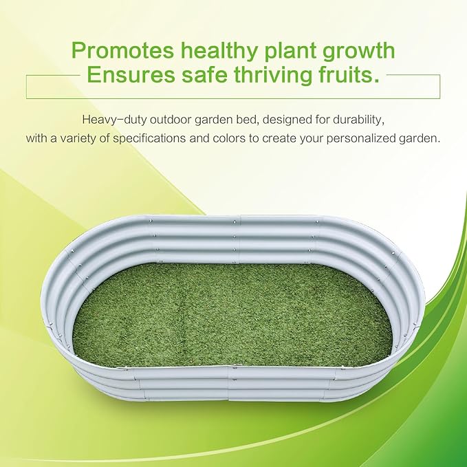 • EASY TO ASSEMBLE: Set up your garden bed, in just minutes and easy to put it together, it can be reused for many years. Our raised garden beds feature an oval design with no sharp corners to cover the edges providing protection from injury. Get started on your garden right away and enjoy fresh, healthy produce in no time.