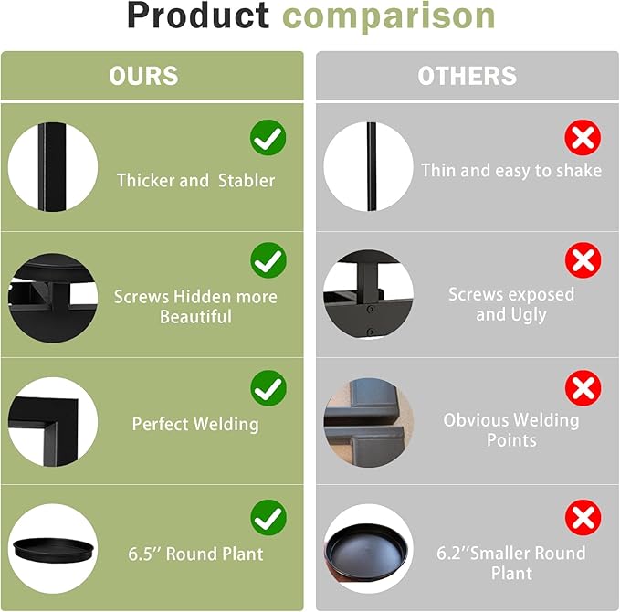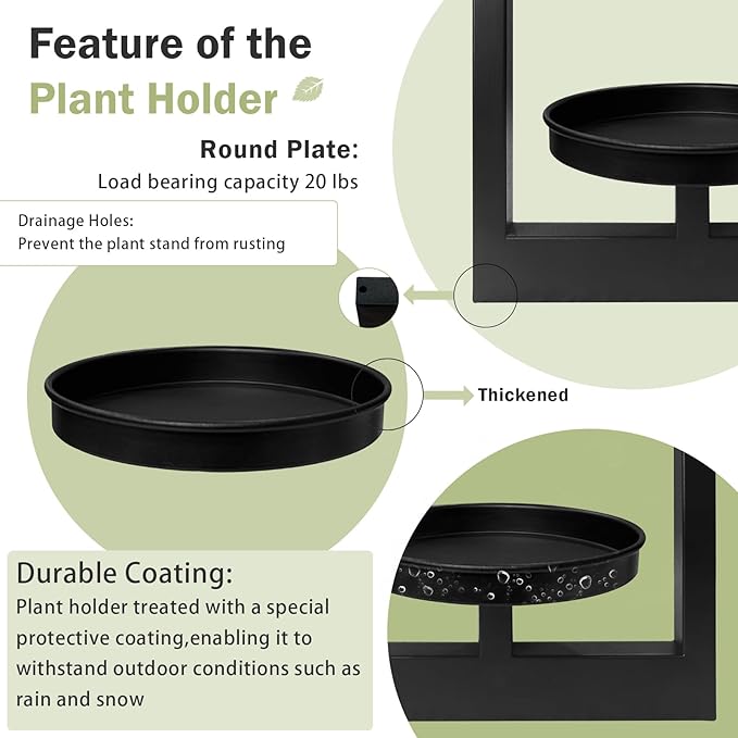 • 【Durable Metal Plant Frames】Plant wall shelf crafted from high-quality metal with exquisite finishing, rust and corrosion resistance, suitable for outdoor and indoor use,our plant frames wall decor not only provide sturdy support for your plants but alsoEnsure a stylish look. Round tray ensure stability and prevent plants from falling down.