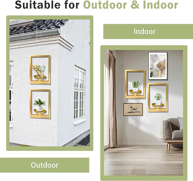 • 【Durable Metal Plant Frames】Plant wall shelf crafted from high-quality metal with exquisite finishing, rust and corrosion resistance, suitable for outdoor and indoor use,our plant frames wall decor not only provide sturdy support for your plants but alsoEnsure a stylish look. Round tray ensure stability and prevent plants from falling down.