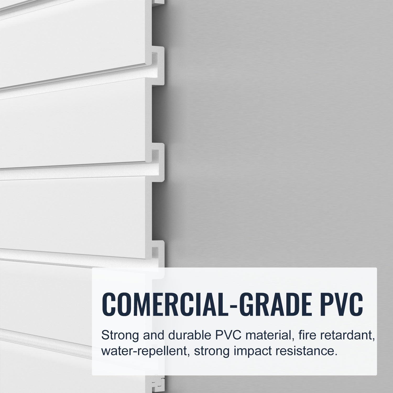 Slatwall Panel Garage Organizer PVC Slatwall Heavy Duty Wall Mounted Rack, Interlocking Slat Wall Panels for Tool Organization Peg Board(White 4 x 4 ft)