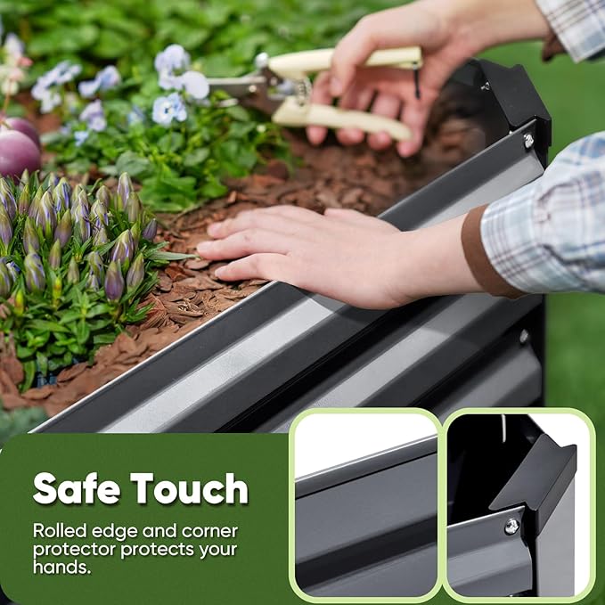 • 【Safe Rolled Edges & Corner Guards】Our raised planter box features rolled edges and corner guards that eliminate sharp protrusions, ensure your hands are not cut during assembly and planting - a critical upgrade parents and pet owners appreciate.