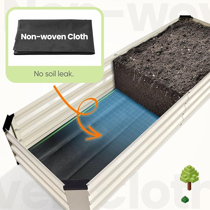 • 【Built-In Non-Woven Layer, No Soil Leaks】Say goodbye to muddy decks and hello to stress-free gardening! The premium non-woven base of our raised garden bed kit acts like a breathable soil guardian, holding soil in place while allowing air and water to flow freely. Perfect for balcony herb gardens, patio tomato plants or indoor flower beds - no more vacuuming spills or scrubbing dirty floors. The non-woven fabric also cushions the galvanized steel base from moisture, doubling the life of the pot.