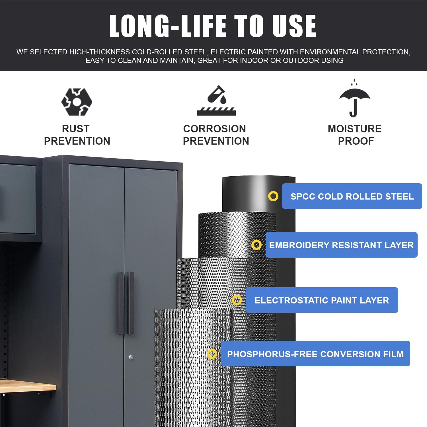 • Tool Organization: HPDMC Garage Storage Cabinet System is specifically designed for garage tool organization