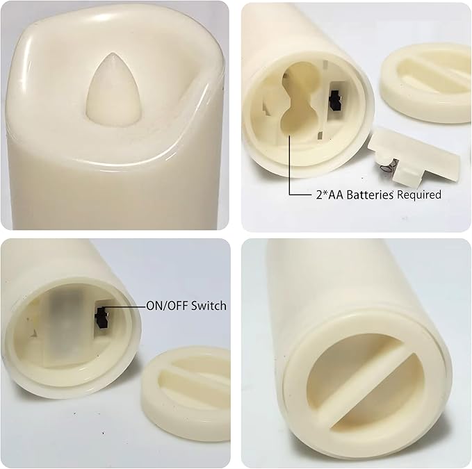 • Easy to use with timer. There is a built-in timer inside each battery LED candle. Once the pillar candle is turned on, the timer starts to work. The LED flameless candle stays on for 6 hours and turns off automatically for the next 18 hour. This 6-hour on, 18-hour off cycle repeats every day. The daily cycle timer saves the troubles of turning on and off this flameless LED candle light manually.