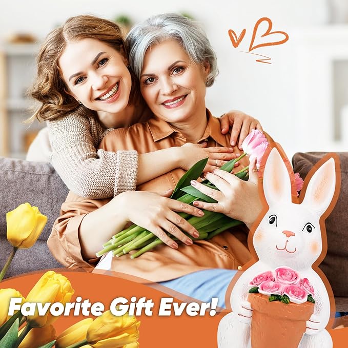 • Perfect Gift for Loved Ones: Searching for a unique gift for parents, friends, or housewarming parties? This charming 11.8inch white rabbit statue, cradling a flower basket, is a delightful and thoughtful present that brings joy to any outdoor space.