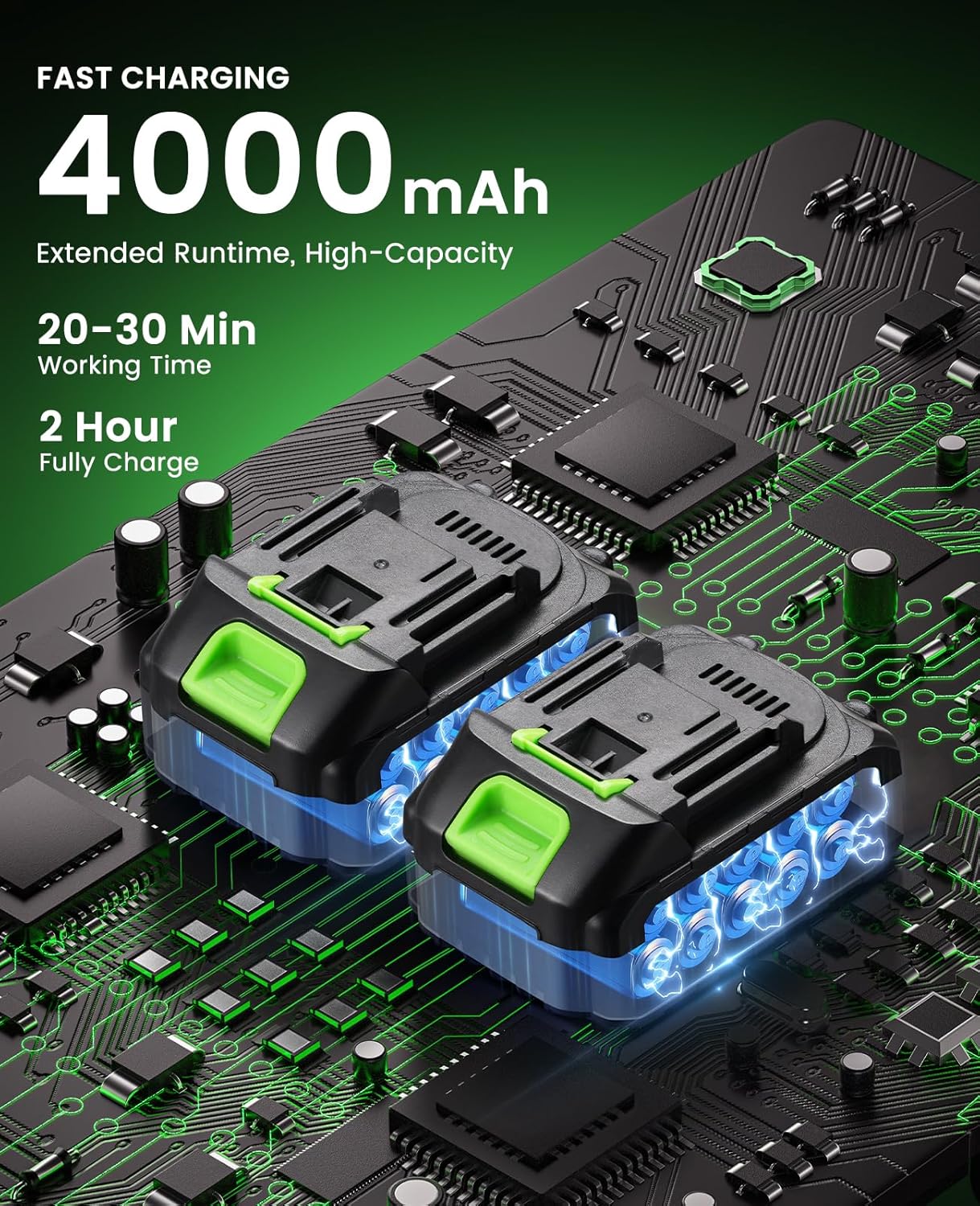 • Safety Protection System: Enjoy peace of mind with our dual-switch system—press the safety lock and trigger together to power on, eliminating accidental starts around children and pets. The reinforced protective cover and anti-splash eyewear work in tandem to safely block flying grass, stones, and debris.