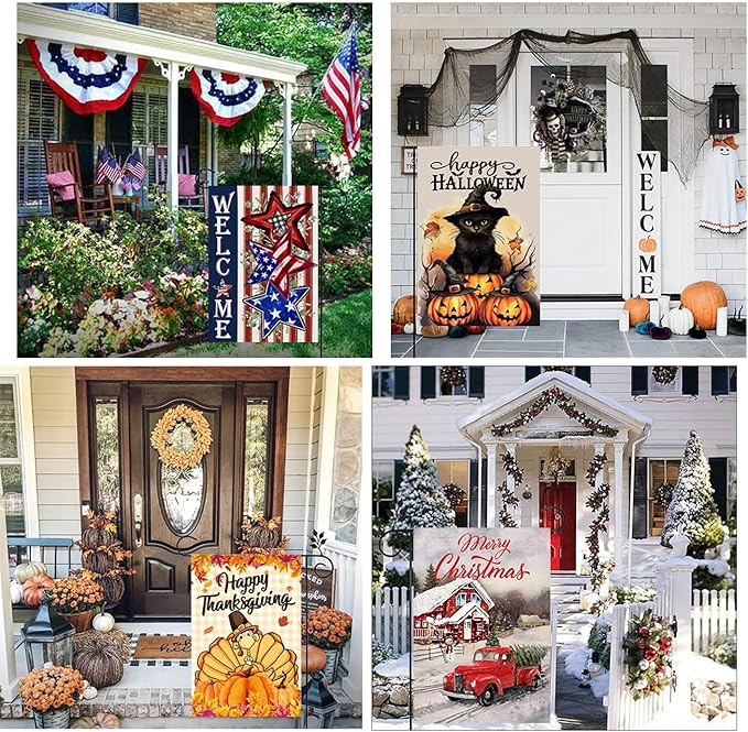 • 1. 【Comprehensive Garden Flag Collection】: Our garden flag set includes all major themes: Spring, Summer, Fall, Winter, Happy new year, Happy Valentines Day, Mardi Gras, St Patricks Day, Easter, Happy Mothers Day, Memorial day, Happy Fathers Day, 4th of July, Happy Labor day, Halloween, Thank you Veterans, Thanksgiving, Home Sweet Home, Birthday, Christmas garden flag. With 20 unique designs, this set caters to a wide range of occasions and seasons, ensuring you’re always prepared.