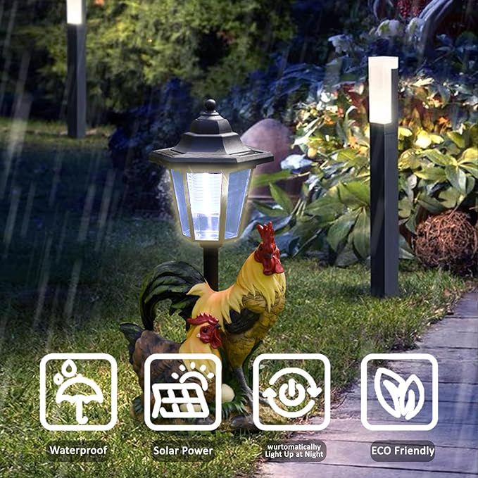 Solar Garden Outdoor Decor Statues Rooster Hen Couple with Light,Outside-Outdoor Decorations Sculptures for Patio Yard Lawn Walkway Ornaments Clearance Gifts for Mom Grandma Birthday