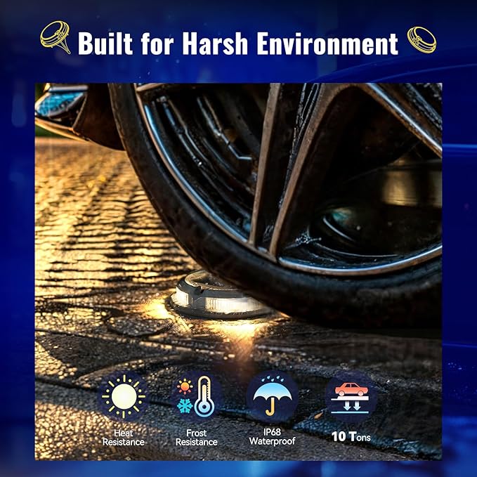 • 【Fast Charging & Long Battery Life】Our solar driveway lights use monocrystalline silicon solar panels, 5V/80mA solar panel batteries, up to 50% conversion efficiency, can be fully charged in 4-5 hours, equipped with 12 high-brightness LED beads, providing more than 30 hours of lighting. If you install it on the driveway and deck, it is a good choice whether it is a driveway marker or a garden decoration