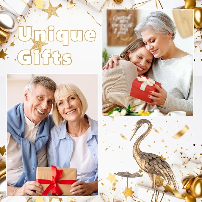• Long-lasting Beauty: this heron outdoor statue is hand-welded from thickened metal material, which is durable and not easily damaged by frost; the surface is coated with bronze and blue gradient color tones, which maintains beauty and prevents rust