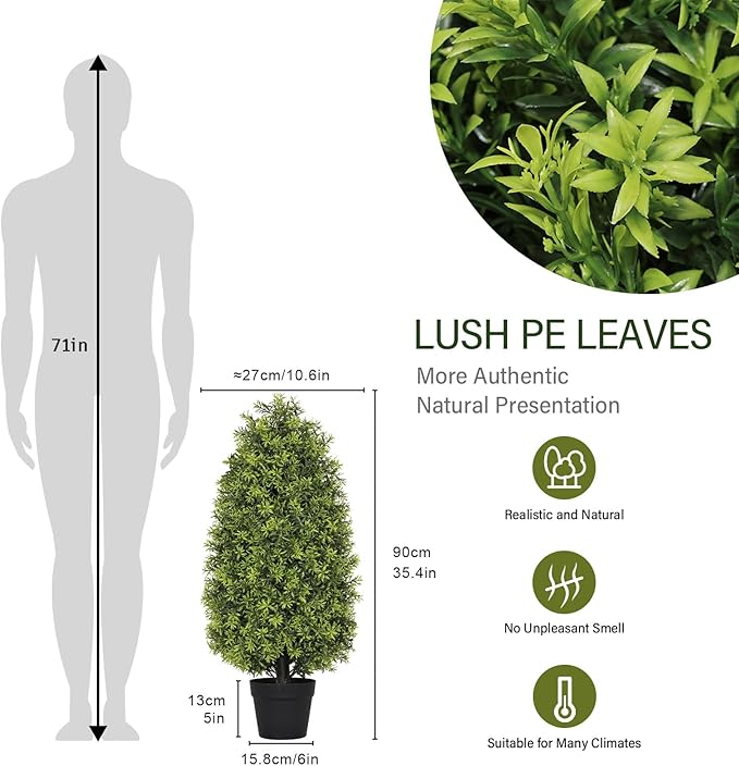 • UV-Resistant & Weatherproof: Designed as durable faux plants outdoor, these artificial topiary for outdoors withstand sunlight, rain, and wind, keeping their vibrant green color year-round