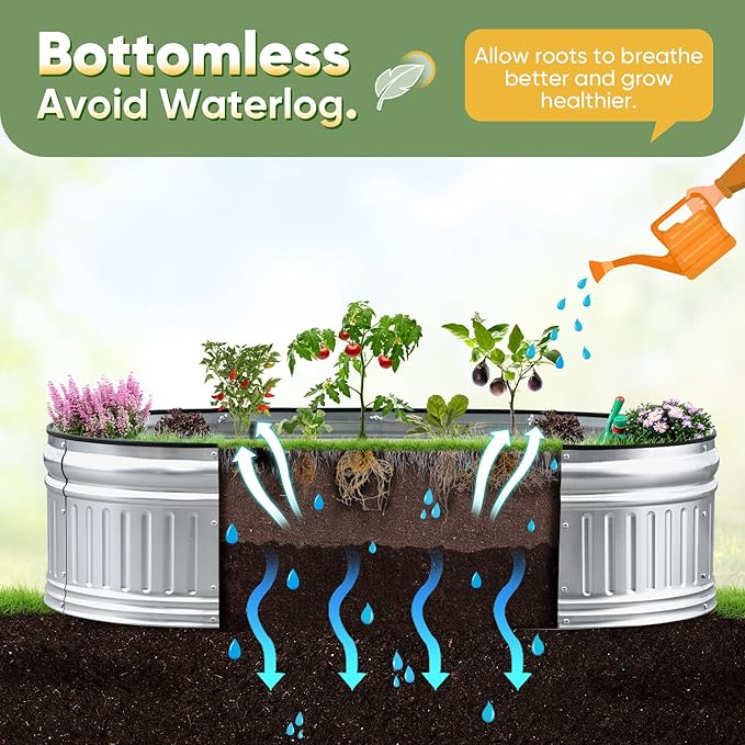 • 【Rubber Strip Edging, Open Bottom】Our garden beds come with rubber edging to prevent cuts during installation or planting, making it safe to use around pets and children. The open base design prevents water accumulation and rot, allowing roots to breathe better and providing a healthy environment for plant roots.
