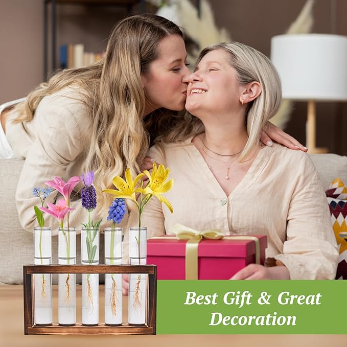 • 1. Natural and Odorless: Our vintage wooden stand and high boron silicon glass planter bulb vase are made from natural pine wood and odorless materials, ensuring a safe and healthy home decor solution.