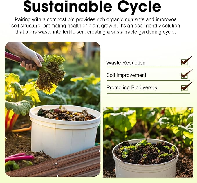 • 【Convenient & Organic】The height of the galvanized raised garden bed greatly reduces the burden of bending over to plant, making it easier for you to perform routine maintenance such as watering, fertilizing and weeding. In addition, our beds can be used with compost bins to effectively utilize kitchen waste and enjoy an organic lifestyle!