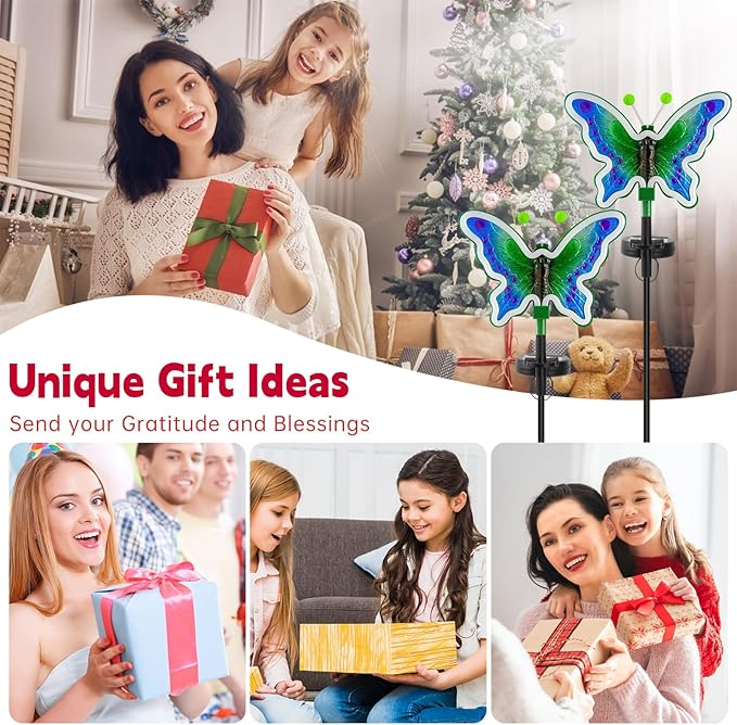 • DESIGN: These solar garden lights are a stylish addition to any landscaping design. Perfect for lining outdoor garden pathways, or as creative highlights for any patio, lawn, or landscaping project. Included are (2) Butterfly neon stake lights and (2) ground stakes.