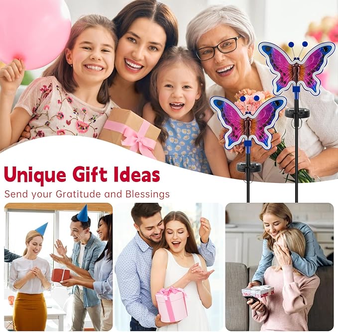 • DESIGN: These solar garden lights are a stylish addition to any landscaping design. Perfect for lining outdoor garden pathways, or as creative highlights for any patio, lawn, or landscaping project. Included are (2) Butterfly Neon stake lights and (2) ground stakes.