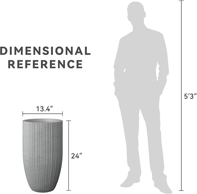 • Generous Growing Space – Thoughtfully crafted to offer plenty of room for healthy and vibrant plant growth, this planter is well-suited for a wide range of plants, from tall trees to resilient succulents and colorful flowers. Its spacious design promotes healthy root development, enhancing the overall growth potential of your plants. The robust construction ensures durability and reliability, making it a source of lasting, stable support for your gardening endeavors.